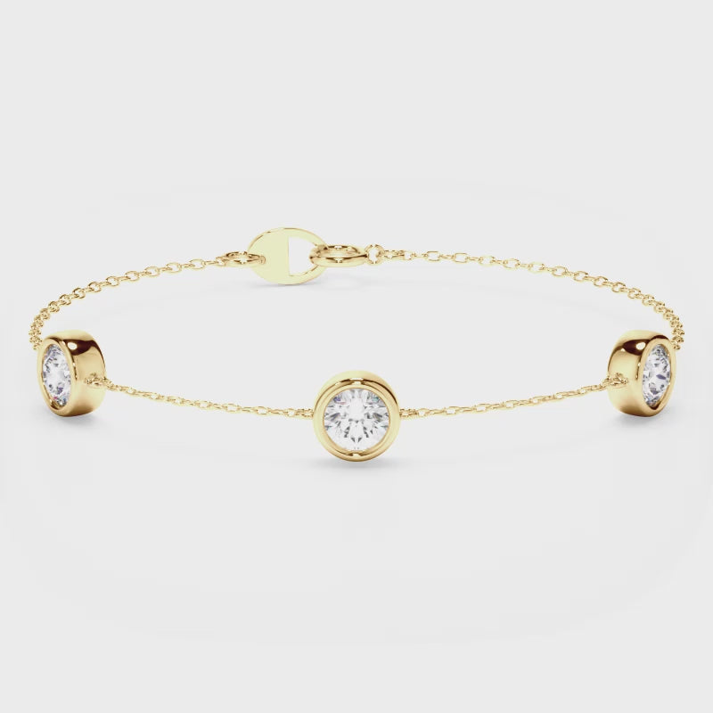 As a part of our Bespoke Collection this timeless 3-stone bezel set laboratory grown diamond bracelet is made especially for you.