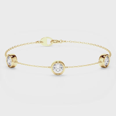 3-Stone Bezel Set Round Brilliant Cut Natural Mined Diamond Bracelet