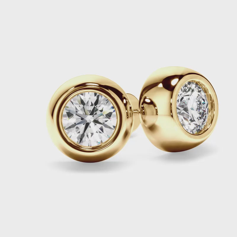 Round Brilliant Cut Diamond Bezel Set Stud Earrings