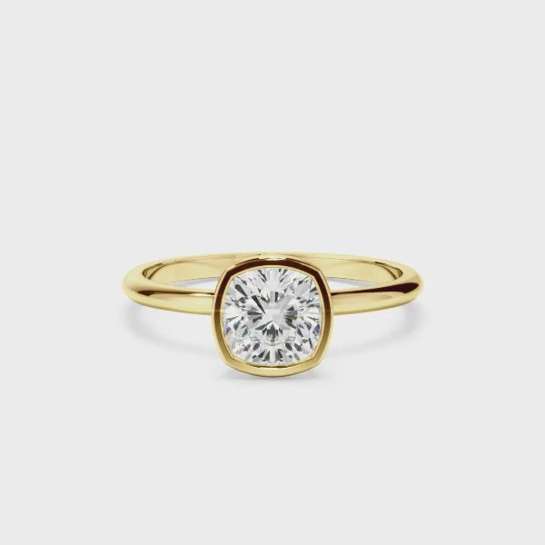 Cushion Cut Diamond Solitaire Bezel Set Engagement Ring