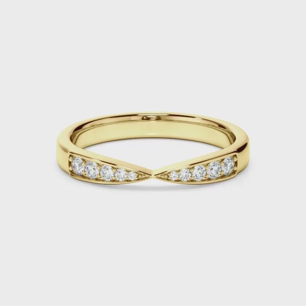 This stunning custom-made wedding ring features round brilliant cut diamonds set along a tapered 18ct gold or platinum band. Exuding fluidity in its line work, and boasting an elegant silhouette, as with all the pieces in our Bespoke Collection, this piece is made especially for you.