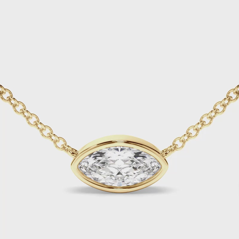 East West Marquise Cut Diamond Bezel Set Solitaire Necklet