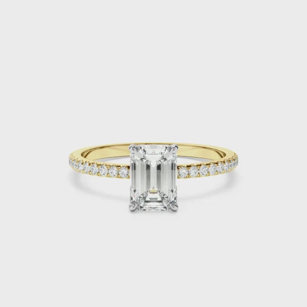 Emerald Cut Diamond Solitaire Engagement Ring With Pave Band