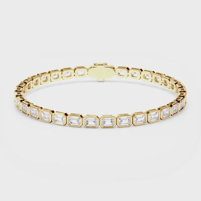 Emerald Cut Natural Mined Diamond Bezel Set Tennis Bracelet