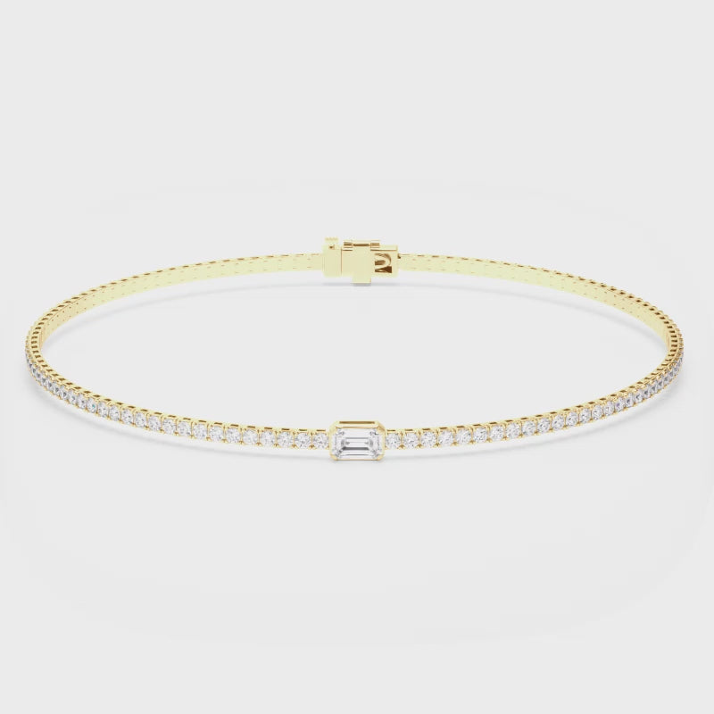 Emerald Cut Solitaire Laboratory Grown Diamond Tennis Bracelet
