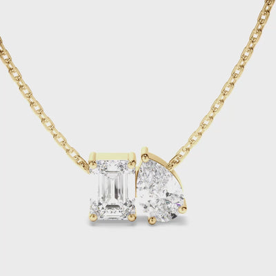 Emerald & Pear Cut Diamond Toi et Moi Necklet