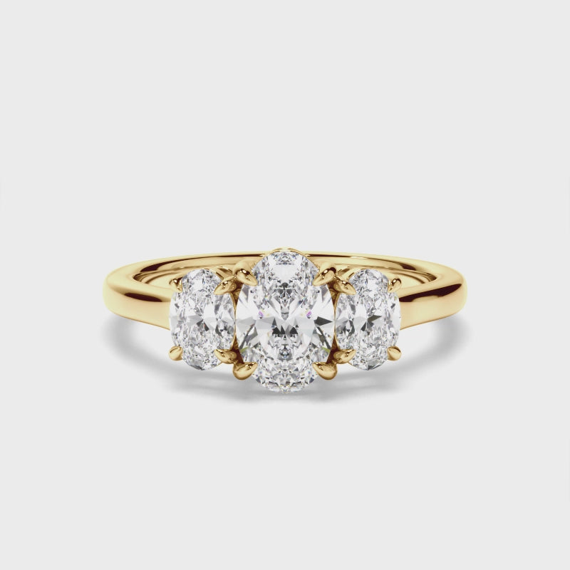 - Side Stones: 2 x 0.30ct Oval Cut E+ VS+ Laboratory-Grown Diamonds = 0.60ct TDW