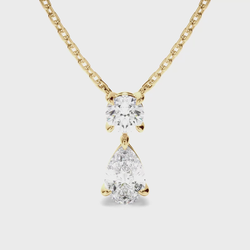 Pear & Round Brilliant Cut Diamond Drop Pendant