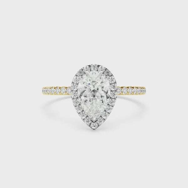 Pear Cut Diamond Halo Engagement Ring With Pave Band