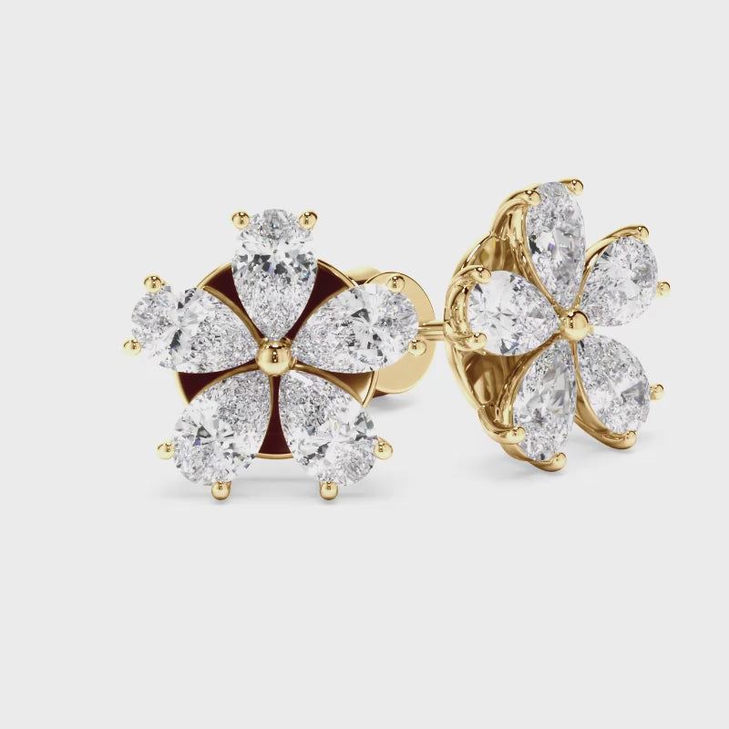These decadent diamond stud earrings feature five 0.50ct pear cut diamonds, set in a flower-like design, and finished with a butterfly post. Exuding fluidity in its line work, and boasting an elegant silhouette, as with all the pieces in our Bespoke Collection, this piece is made especially for you.