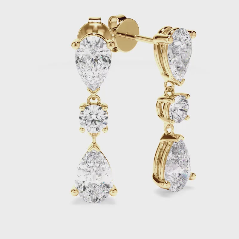 Pear & Round Brilliant Cut Diamond Drop Earrings