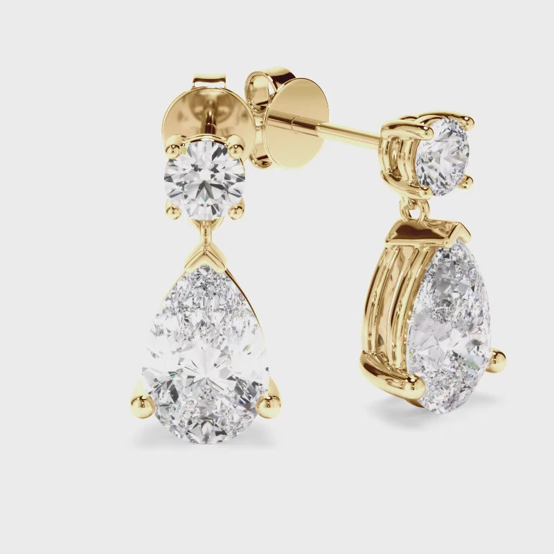 Pear & Round Brilliant Cut Diamond Drop Stud Earrings