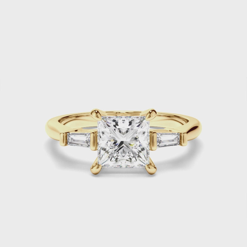 Princess Cut Diamond Trilogy Engagement Ring with Baguette Sides