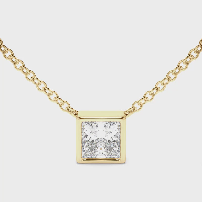 Princess Cut Diamond Bezel Set Necklet