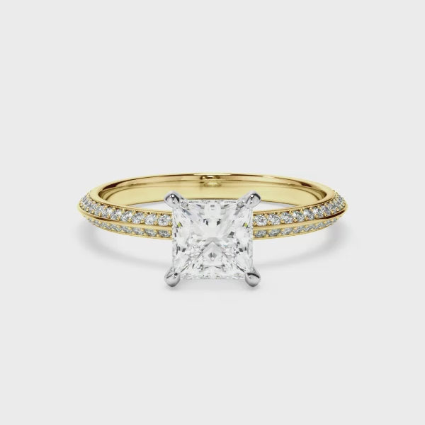 Princess Cut Diamond Knife Edge Engagement Ring With Diamond Pave Sides