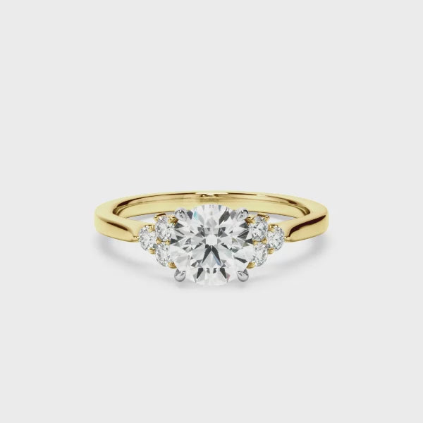 - Side stones: 0.18ct TDW Round Brilliant Cut E+ VS+ Laboratory-Grown Diamonds