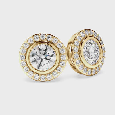 Round Brilliant Cut Diamond Halo Stud Earrings