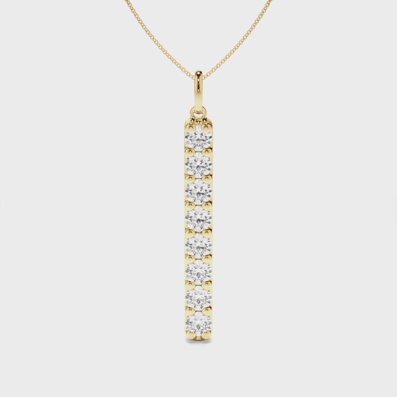 Round Brilliant Cut Diamond Drop Bar Pendant